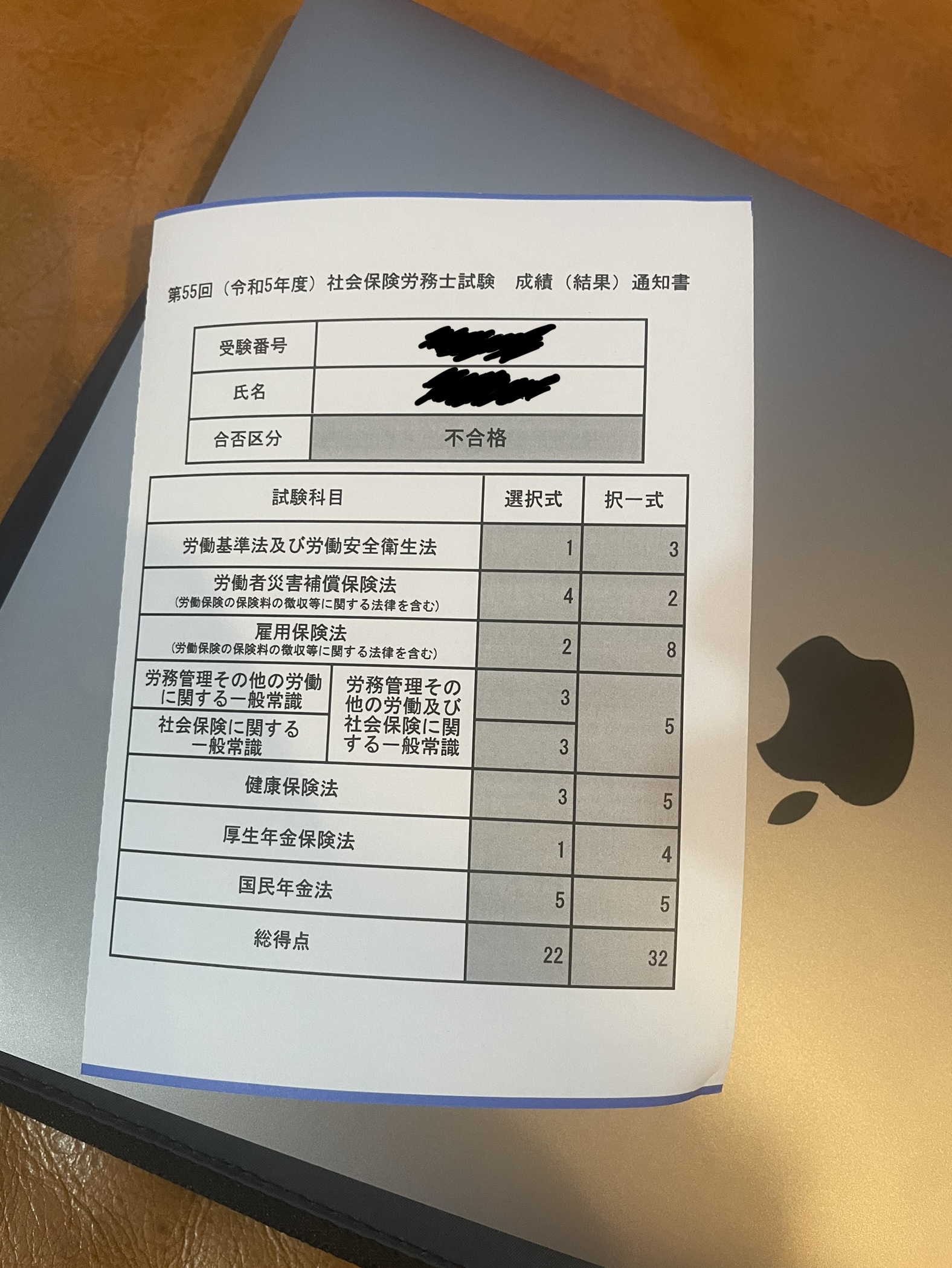 第55回社労士試験 自己採点結果